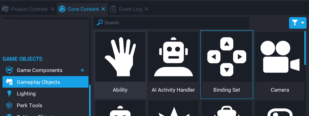 New Core projects created, will contain a Binding Set that will have the default Core bindings set up already in the Hierarchy. This will allow creators to modify the default Binding Set to customize it for their game, or remove it and create their own. If there is no Binding Set in the Hierarchy, the default controls will be used.