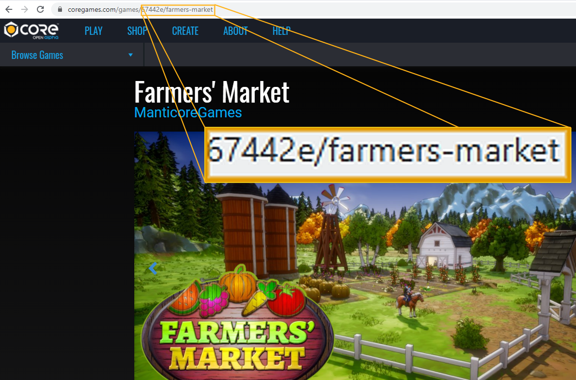 - Navigate to your game page. You can do this by following the shareable link from the create menu, or by searching for the game title at coregames.com.