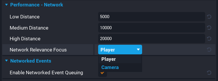 The Network Relevance Focus property allows creators to select between Player and Camera to determine which object the network relevance calculations are made in reference to.