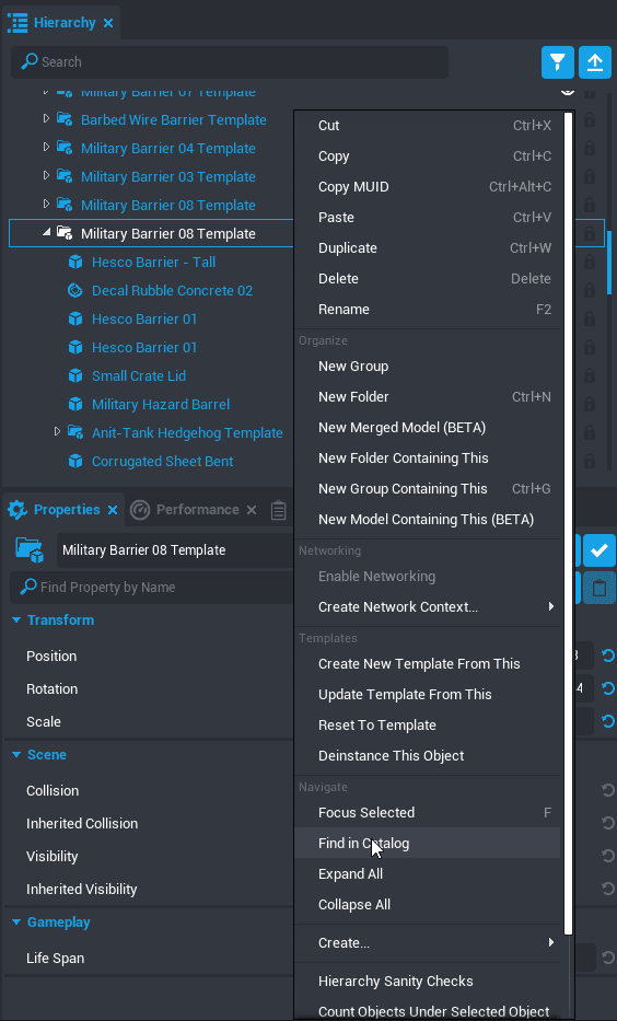 If you find a model in the world that you would like to copy and use elsewhere, you can always duplicate it with Ctrl+W, but you may also want to find the template that it was made from in Project Content.