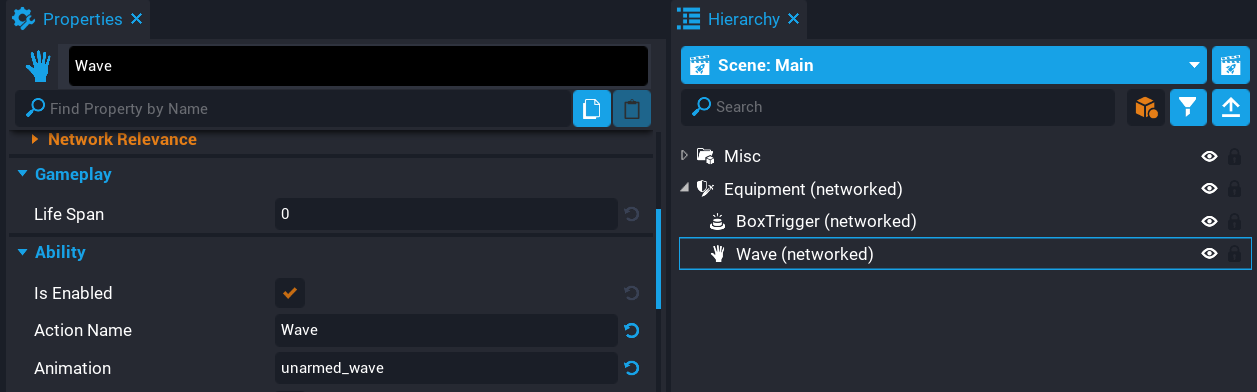 In this tutorial you will create an ability that can be picked up in the world, and when activated, the player will wave. You will be using Core Content components that can be placed in the Hierarchy, so no Lua knowledge is needed.