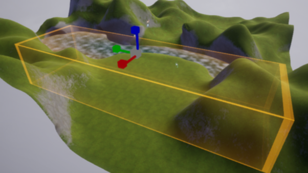 2. Resize the z scale of the Under Water Post Process so it covers the depth of the pond and river.