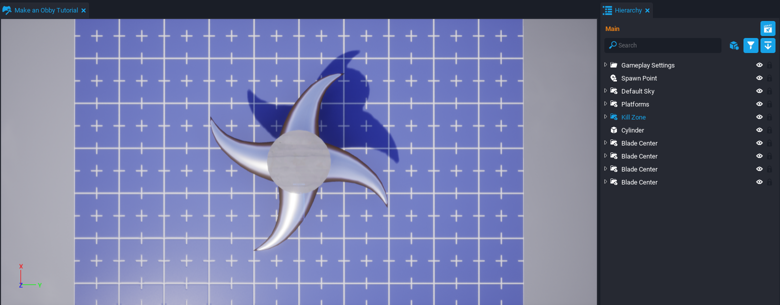 In this tutorial, you are going to make an Obby, which is a platform and obstacle game. The game will have moving, rotating, and shrinking platforms as well as deadly spinning blades. The game will also have a rewards chest that can animate open and close. The reward inside is a flying pet that follows the player.