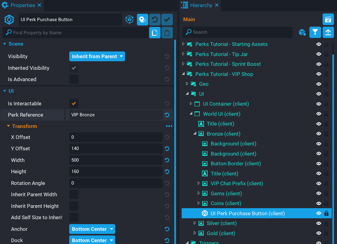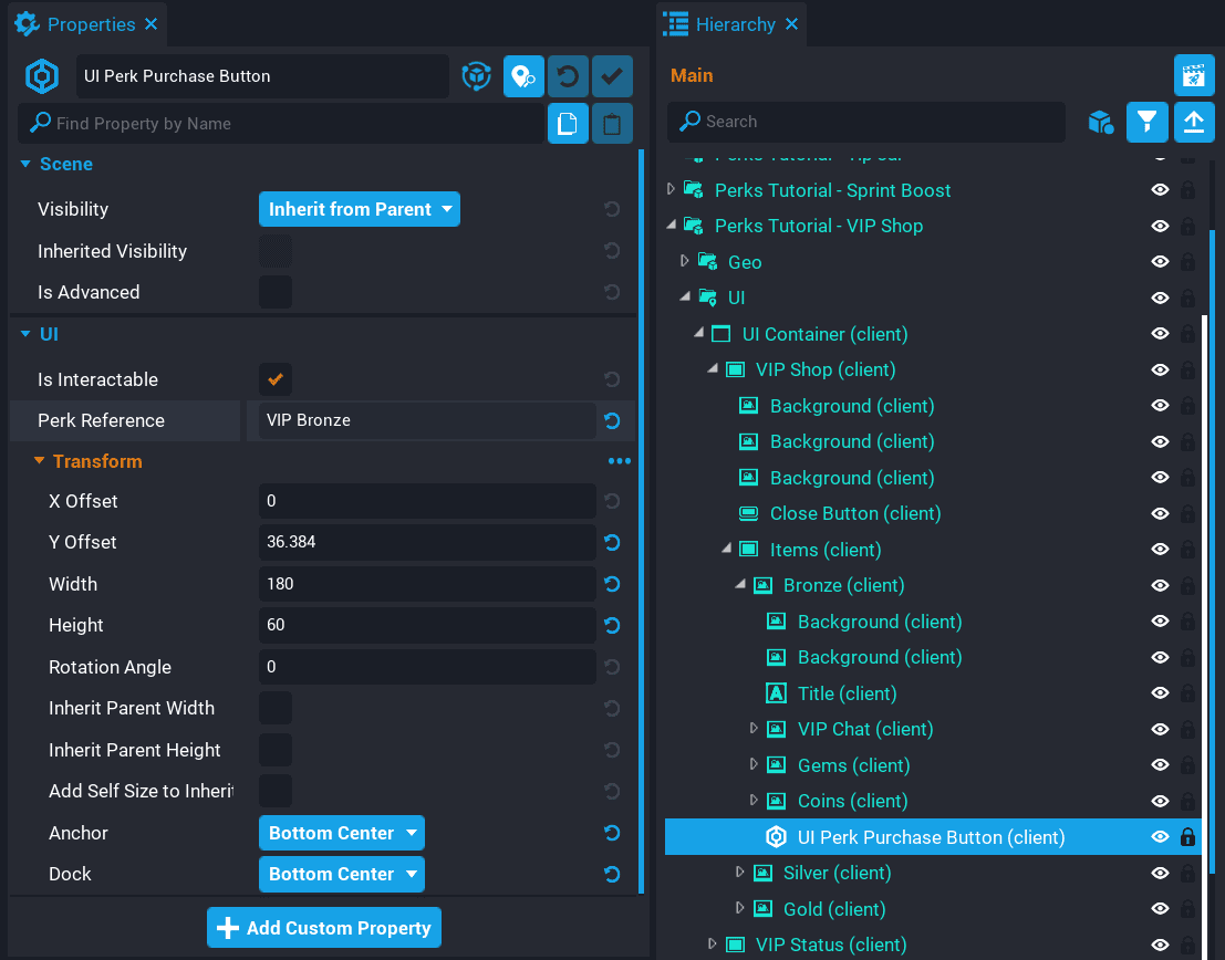 • Add the VIP Bronze perk as a custom property. Name the property VIPBronze.