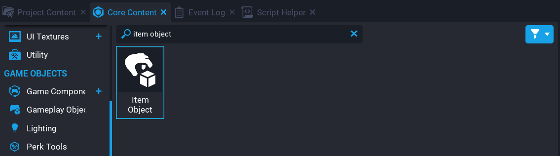 Creators can create Item Objects by dragging the Item Object from Project Content which is found under Gameplay Objects into the Hierarchy.