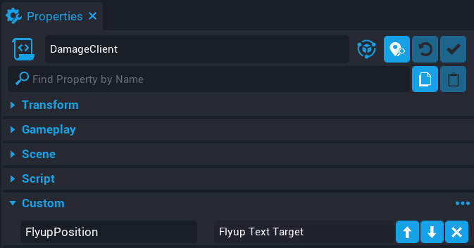 Add the Transition panel onto the PlayerClient script as a custom property. Name the custom property Transition.