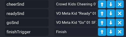 cheerSnd. - Drag and drop the finish line trigger as a custom property and rename it to